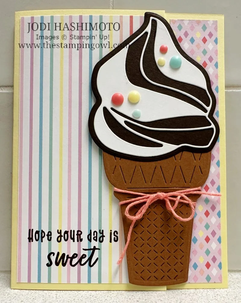 Here are the cards from my Sweet as Sugar class. The stamp sets and products are from the Mini Catalog and On-line Exclusives and will satisfy your crafty sweet tooth! Recipes are included with each project and the supply details are listed at the end of this post. Thanks for stopping by!