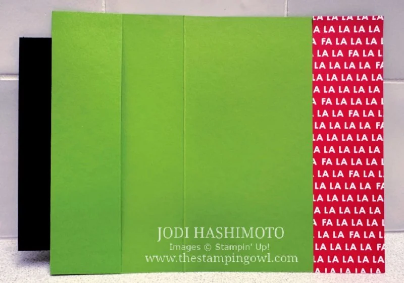 Granny Apple Green cardstock 8 ½ x 5 ½”, scored at 1 ½” and 4 ¼” on the 8 ½” edge