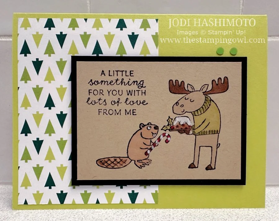 Check out the moose and beaver gift exchange! The images were stamped on crumb cake to give it more of a rustic and forest feel.