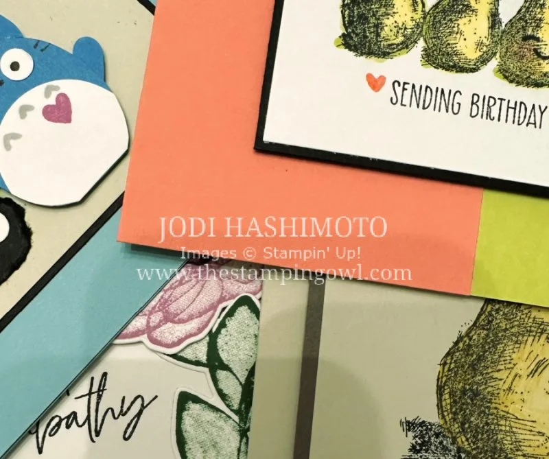 Hi friends! Hope you can join me this month to create cards with wood sprites, happy pears, and pretty florals. Featuring products from the new annual catalog, including another critter you can make with the Bee Builder punch! Here is a sneak peek of the class cards: